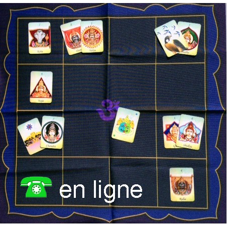 En début de consultation, l'intervenant effectue un tirage à l'aide du jeu de cartes de l'Oracle des 9 Joyaux, en disposant les cartes sur le kundali. Celui-ci est un support spécialement conçu à cet effet : il comprend 12 palais qui symbolisent les différents aspects de votre vie.