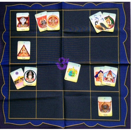 En début de consultation, l'intervenant effectue un tirage à l'aide du jeu de cartes de l'Oracle des 9 Joyaux, en disposant les cartes sur le kundali. Celui-ci est un support spécialement conçu à cet effet : il comprend 12 palais qui symbolisent les différents aspects de votre vie.